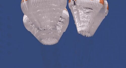 パラシュートが途中から大きく開くさまが圧巻でした。SpaceXは魅せるところをよく知っているなあといつも思う。